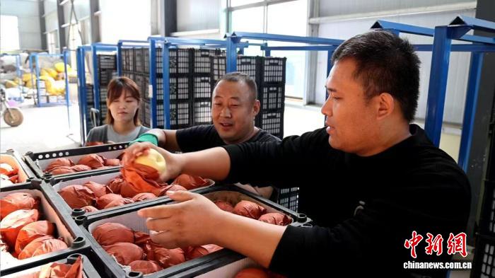 梨农闫卫强和工人们一起,将一筐筐精心采摘的酥梨装车,这批梨将直接运往耀华果业的加工车间,经过严格筛选后出口至东南亚市场。“今年种了七八亩地,产量比往年能提高一成左右,我们的酥梨品质都能达到国家标准,出口到泰国等国家。”